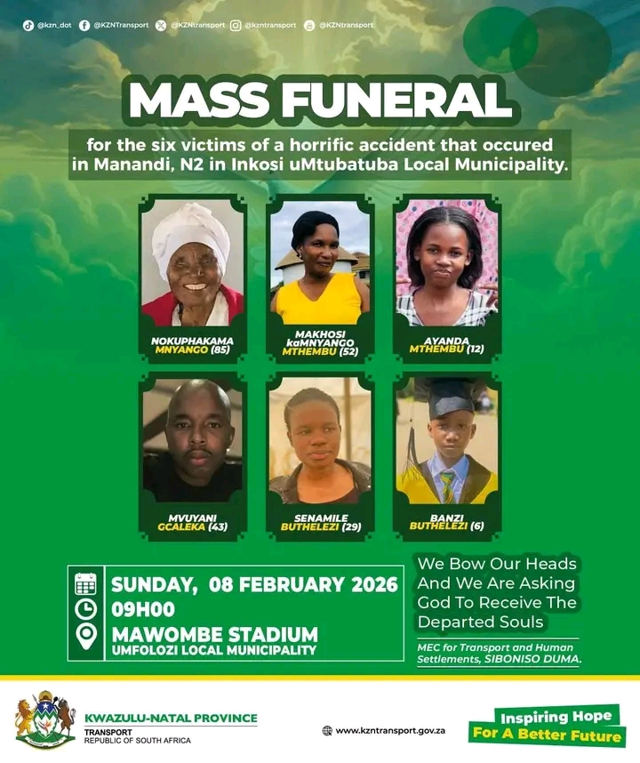 The accident has left the community in mourning, with the KwaZulu-Natal MEC for Transport and Human Settlements, Siboniso Duma, expressing deep sorrow and condolences to the grieving family.